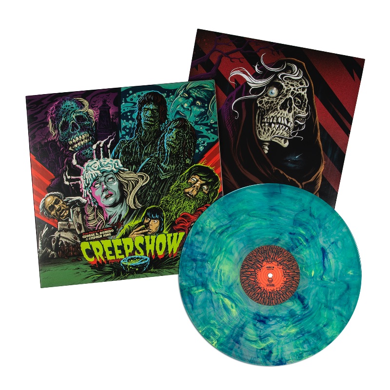 CREEPSHOW features deluxe packaging with heavyweight old-style tip on gatefold jackets with built-in booklet pages, director liner notes from George A. Romero, composer liner notes from John Harrison, the complete score, 180 gram colored vinyl, printed inserts, and artwork by Ghoulish Gary Pullin.