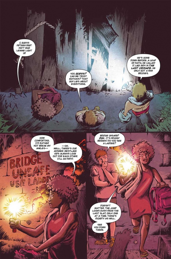 Keller: Conor does a fantastic job of drawing both emotional characters and horrific scenes. We both wanted to ground the comic with emotion, so that was our priority. Almost the entire first issue focuses on character interactions without any glimpse of fantasy or horror at all. The horrific elements in the first 27 pages focus on emotional abuse, cancer, the loss of a loved one, the importance of friendship in the face of darkness. We knew people can relate to real-life nightmares like this, so that was a priority when balancing the two.