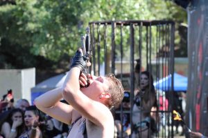 The music lineup was insane and enough to bring out every metal-head in the area, but that’s not all the event had to offer because this was not just a mere music festival. A highlight of the event was “Castle Danzig,” a place for performers to collectively entertain the masses. A freak show of sorts, the area featured fire breathers, dancers, sword-swallowers, blood-bathers, and a variety of other entertainers for whom titles probably do not exist. “Castle Danzig” also featured suspended men and women with a special guest appearance by Dave Navarro.