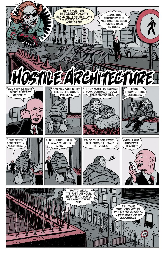 As horror fans gear up for all the news and information that will start coming out of San Diego Comic-Con this week, EC has provided Horror News Network an exclusive excerpt of Hostile Architecture by Matt Bors and Kano from Catacomb of Torment #2. The story is one of several that will appear in the anthology series and will hit shelves on August 20, 2025. Bors is known for his work on the Toxic Avenger comic and he is also a Pulitzer Prize finalist. Check out the exclusive pages below followed by the full issue description.
