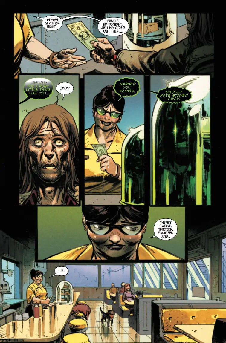 In explaining the new series, Johnson said the creative team is “getting back to Stan Lee’s Frankenstein/Jekyll & Hyde inspirations for the character, and giving readers a proper monster book in the truest Hulk tradition. If you love Marvel monsters and ghost stories, do not miss the return of The Incredible Hulk.”