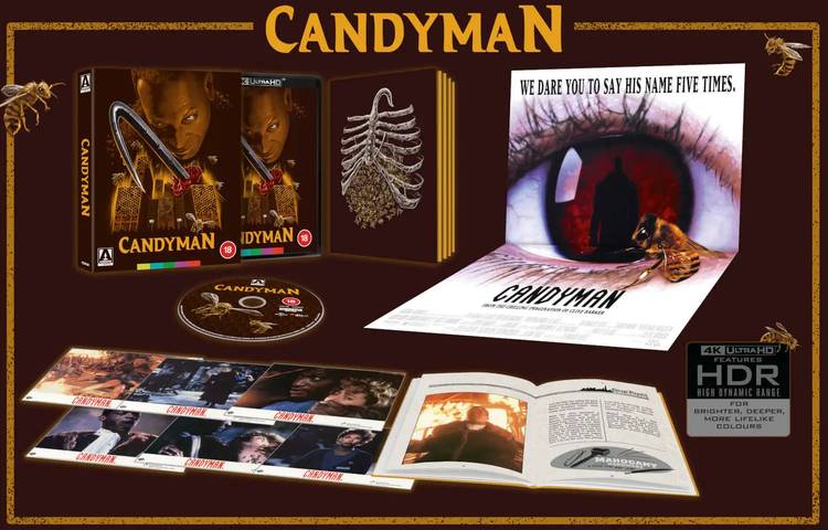 The classic 1992 Candyman will come to 4K Ultra HD format (thanks to Arrow Video) May 23. Fans can preorder the release for $40. Check out the array of goodies in this special edition–courtesy of collider.com–on this page.
