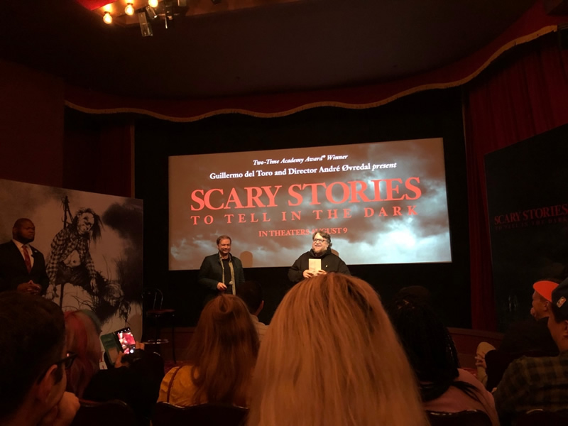 With the buzz about Scary Stories to Tell in the Dark growing daily, a special press event was held today at the Roxy Cinema in New York that featured the latest trailer, two short clips from the film, and a Q&A session with writer/producer Guillermo del Toro (The Shape of Water, Pan’s Labyrinth) and director André Øvredal (The Autopsy of Jane Doe, Troll Hunter).