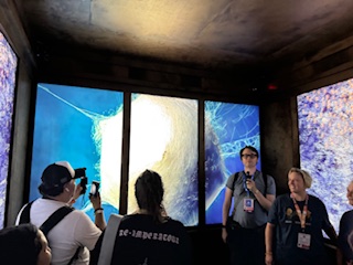 FX was onsite at San Diego Comic Con as fans of horror have come to expect with the brand. This year, they were showcasing in their FXSDCC activation the FX Fearless Hellevator and What We Do in the Shadows. The Hellevator was an experience that felt like it belonged at a theme park. Guests were able to enter an “elevator” with motion effects and screens for visuals inspired by the American Horror Story series. Appropriately creepy and also somewhat nostalgic for fans of the show. This was all to promote the upcoming Grotesquerie series from Ryan Murphy premiering in the fall. The What We Do in the Shadows exhibit was more subdued, however, it did feature Creepy Nadja Doll, which made an excellent photo opportunity.