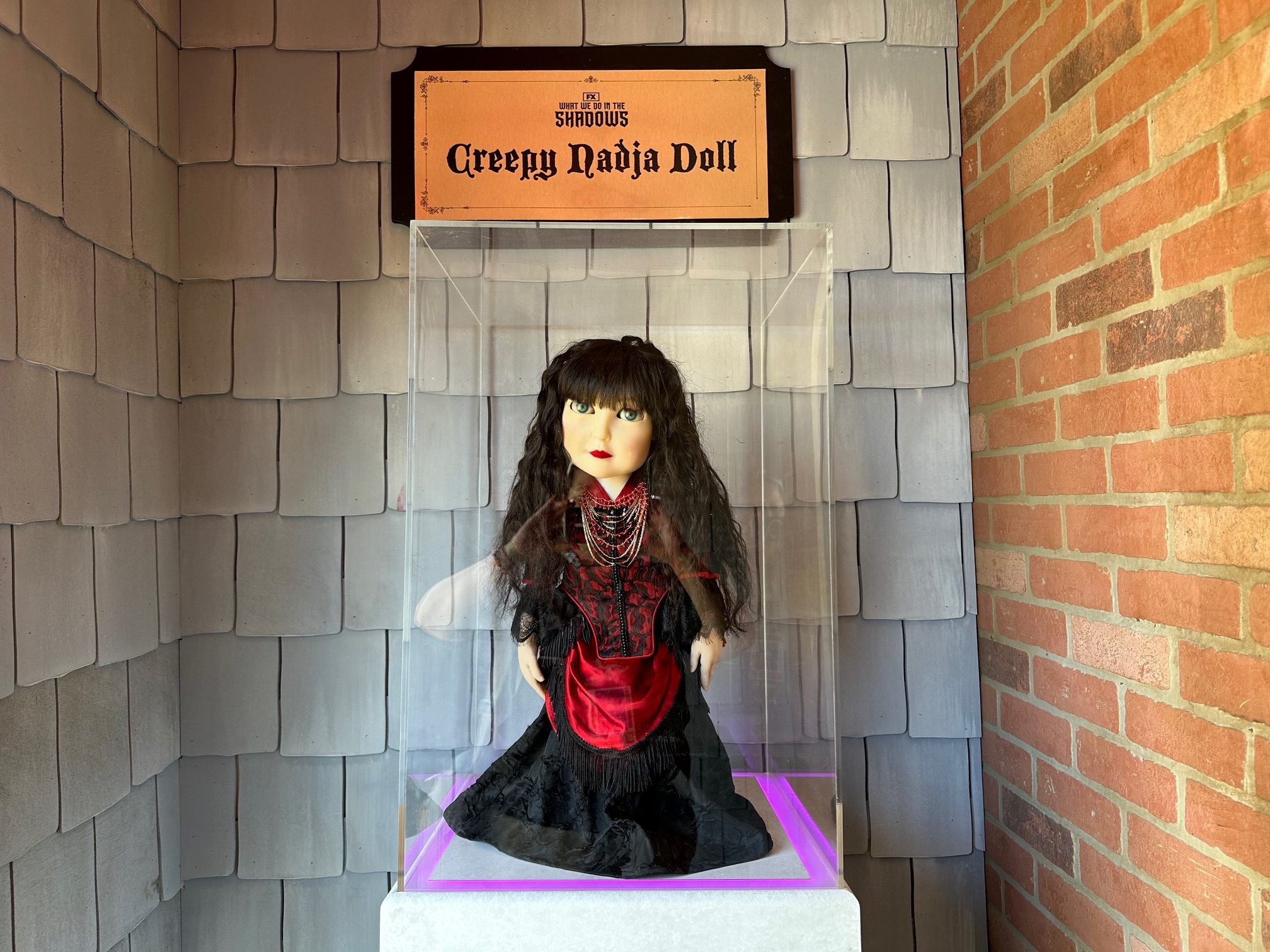 FX was onsite at San Diego Comic Con as fans of horror have come to expect with the brand. This year, they were showcasing in their FXSDCC activation the FX Fearless Hellevator and What We Do in the Shadows. The Hellevator was an experience that felt like it belonged at a theme park. Guests were able to enter an “elevator” with motion effects and screens for visuals inspired by the American Horror Story series. Appropriately creepy and also somewhat nostalgic for fans of the show. This was all to promote the upcoming Grotesquerie series from Ryan Murphy premiering in the fall. The What We Do in the Shadows exhibit was more subdued, however, it did feature Creepy Nadja Doll, which made an excellent photo opportunity.