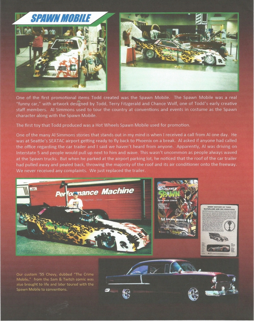 Through never before seen pictures and killer anecdotes, Burke describes how McFarlane Toys transformed the industry with Toy Fair Displays featuring unprecedented levels of immersion and detail and action figures that always put the fans first. Burke says that when McFarlane was informed that the company wouldn’t earn a dime on the oversized Malebolgia figure, he insisted that they move forward with the huge casting so it would be to scale with the rest of the smaller Spawn figures for the fans. This spirit of generosity was a core value of many members of the staff, as Burke recounts a time during the 1996 Motor City Con when the company was selling special Malebolgia figures for $60. A kid came up to the booth and purchased a figure from Burke, and as soon as it was in his hands the kid tore it out of the packaging and began playing with it on the convention floor. When Burke saw that, he immediately handed the kid his money back! The book does a great job of letting the reader know what it was like being a part of these events as they unfolded.